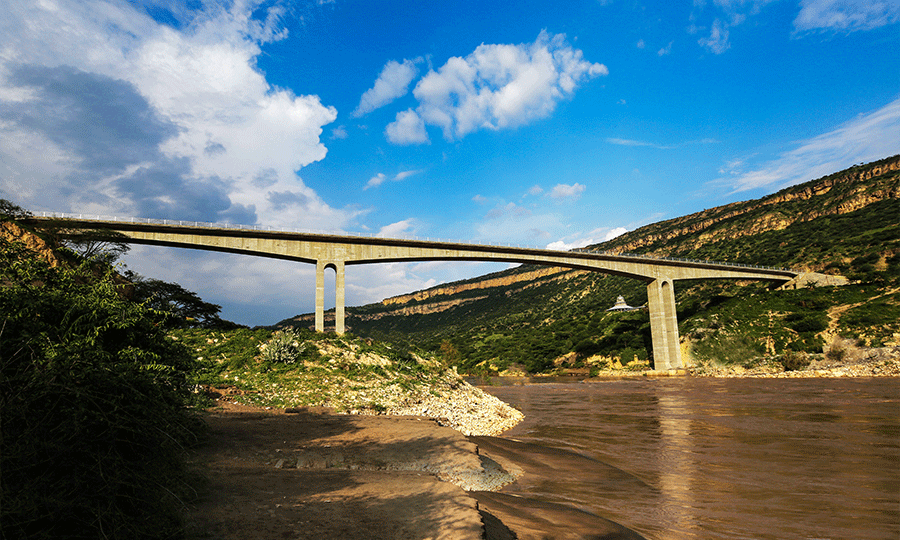 尼羅河大橋項目位于埃塞俄比亞阿姆哈拉州,為KOMBOLCHA—GUNDEWEIN公路第二標段中的重要分項工程。大橋橫跨藍尼羅河,是埃塞俄比亞第一座預(yù)應(yīng)力混凝土連續(xù)剛構(gòu)橋,橋梁全長為294.2米,寬度10.6米。