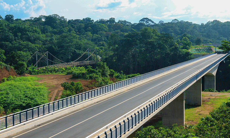 尼喀邊境大橋起點(diǎn)尼日利亞境內(nèi),止點(diǎn)喀麥隆境內(nèi),項(xiàng)目全長(zhǎng)1500M,共分為三部分:尼日利亞境內(nèi)引道長(zhǎng)300M;喀麥隆境內(nèi)引道長(zhǎng)880M;橋梁為5跨預(yù)應(yīng)力混凝土連續(xù)箱梁橋408M。項(xiàng)目于2017年4月26日開(kāi)工,2022年11月3日完成竣工交付。
