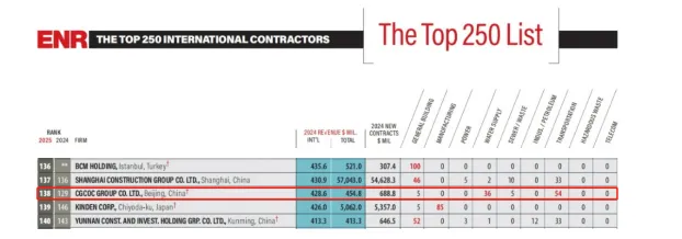 2025年度《美國工程新聞紀錄(ENR)》全球最大250家國際承包商榜單節(jié)選