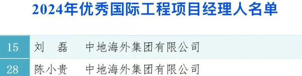 近日,中國(guó)對(duì)外承包工程商會(huì)發(fā)布2024年優(yōu)秀國(guó)際工程項(xiàng)目經(jīng)理人名單,中地海外尼日利亞公司項(xiàng)目經(jīng)理陳小貴、喀麥隆公司項(xiàng)目經(jīng)理劉磊入圍獲選。