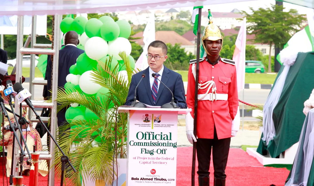 竣工儀式現(xiàn)場(chǎng)彩旗飄揚(yáng),熱鬧非凡,尼日利亞總統(tǒng)提努布親臨現(xiàn)場(chǎng)并發(fā)表講話,這也是過去一周中提努布總統(tǒng)本人第二次出席公司的項(xiàng)目竣工儀式。尼日利亞聯(lián)邦首都區(qū)部長(zhǎng)威克等政府要員,中國(guó)駐尼日利亞使館臨時(shí)代辦張儀公參、中地海外尼日利亞公司總經(jīng)理鐘翔,以及尼日利亞多個(gè)主要黨派代表、社區(qū)代表、傳統(tǒng)領(lǐng)袖等300余人出席項(xiàng)目竣工儀式。